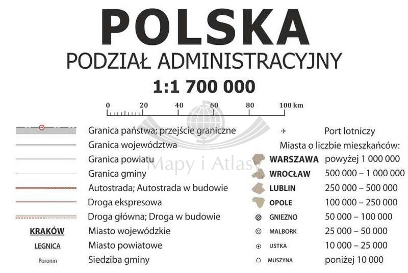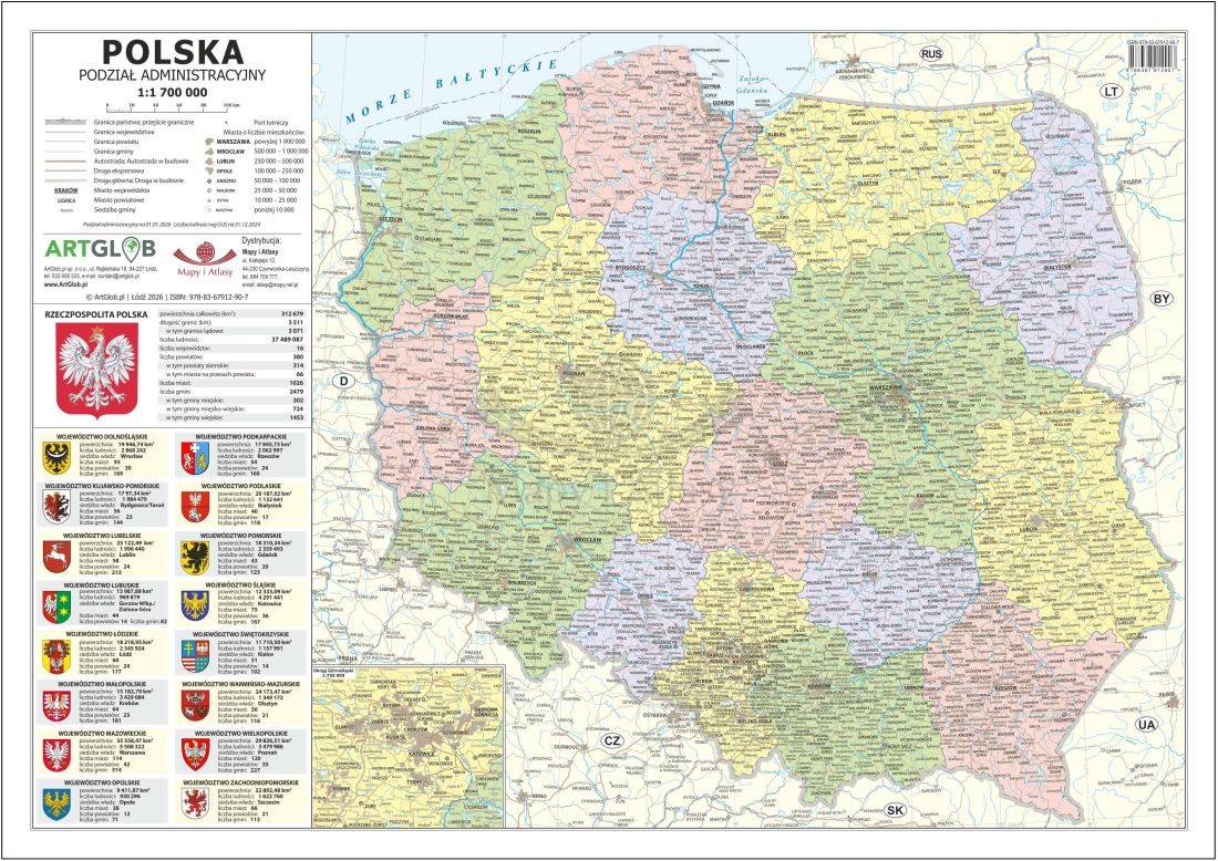 Polska 1:1 700 000. Laminowana, dwustronna podkładka / mapa planszowa. Fizyczna/administracyjna. Wyd. 2026