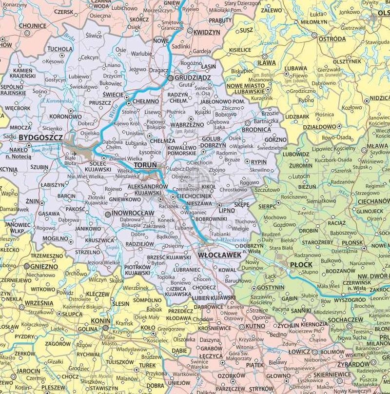 - wskazanie miast wojewódzkich, powiatowych oraz siedzib gmin,