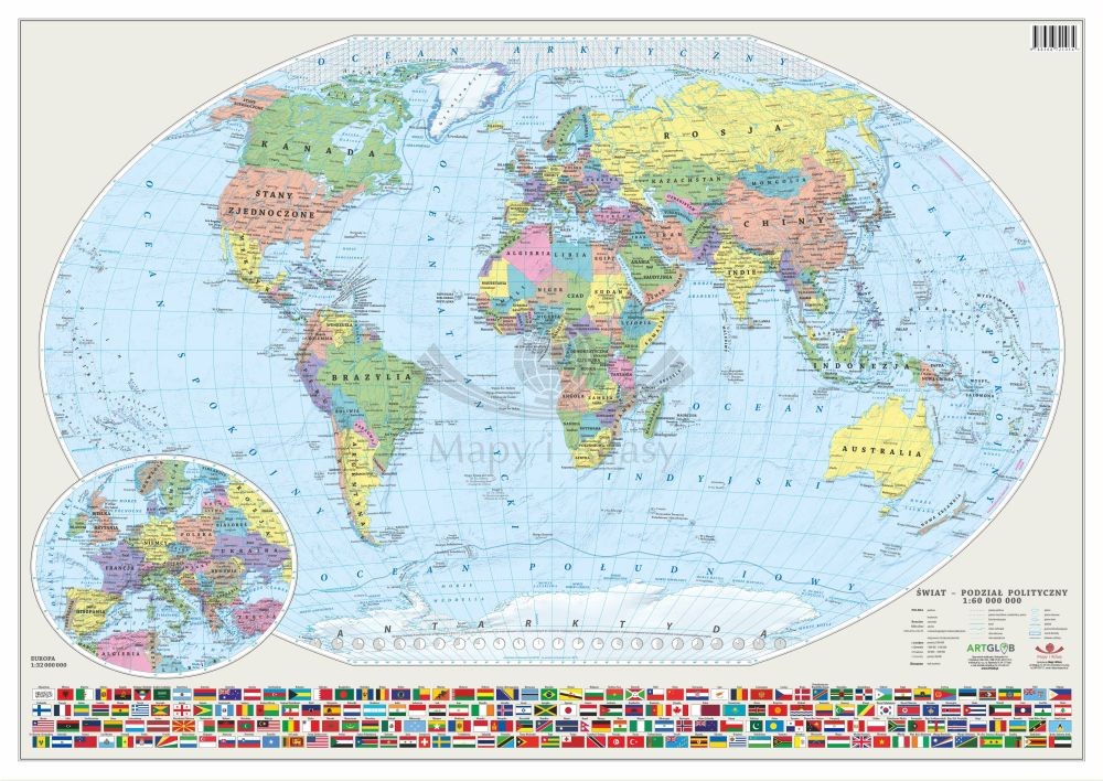 Świat 1:60 000 000. Laminowana, dwustronna podkładka / mapa planszowa. Fizyczna/polityczna. Wyd. 2026