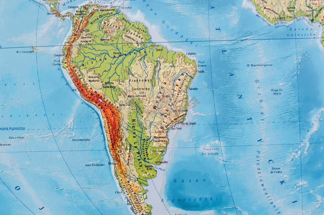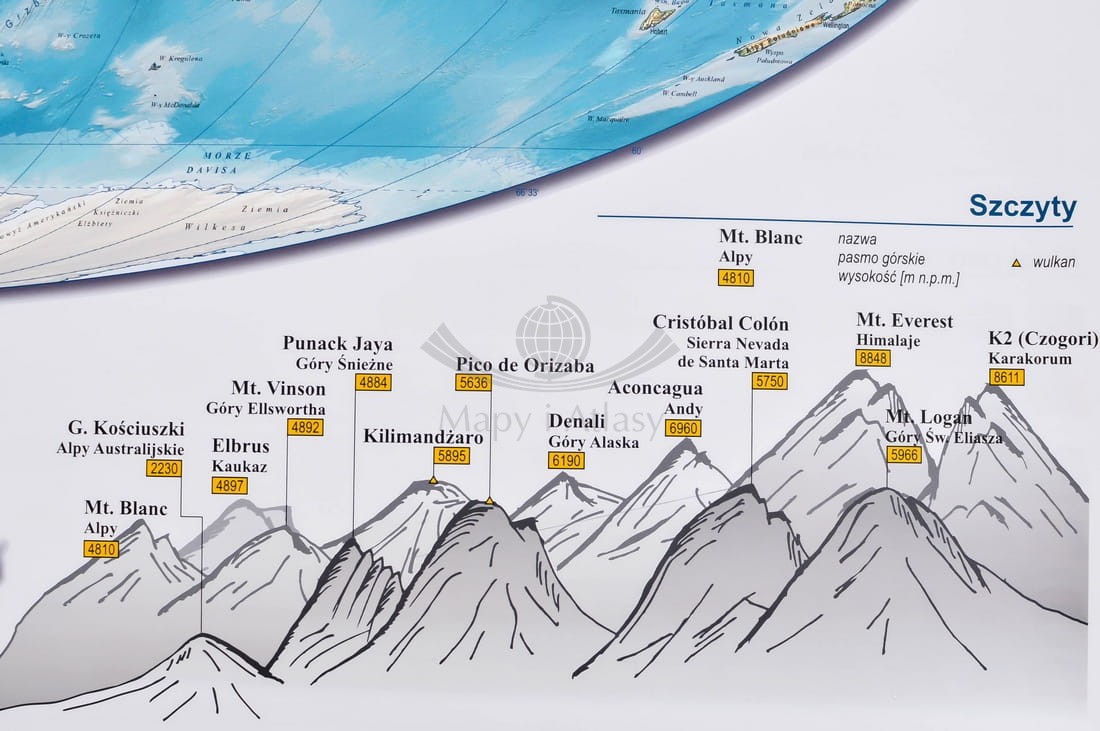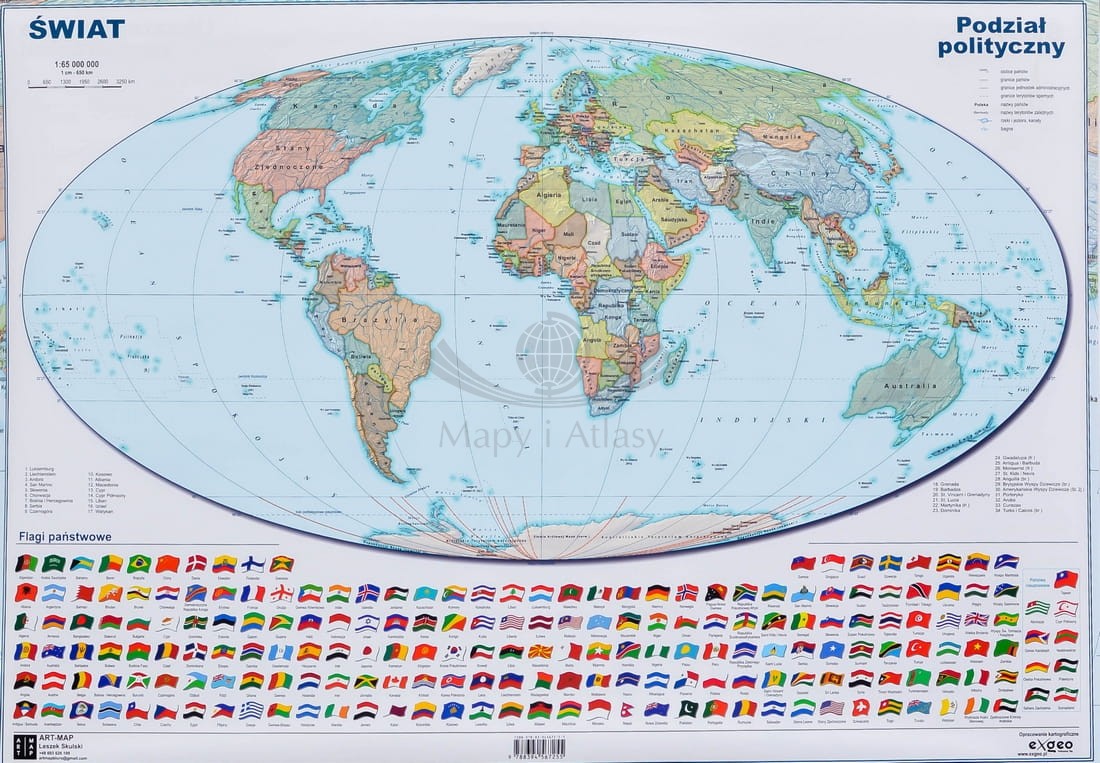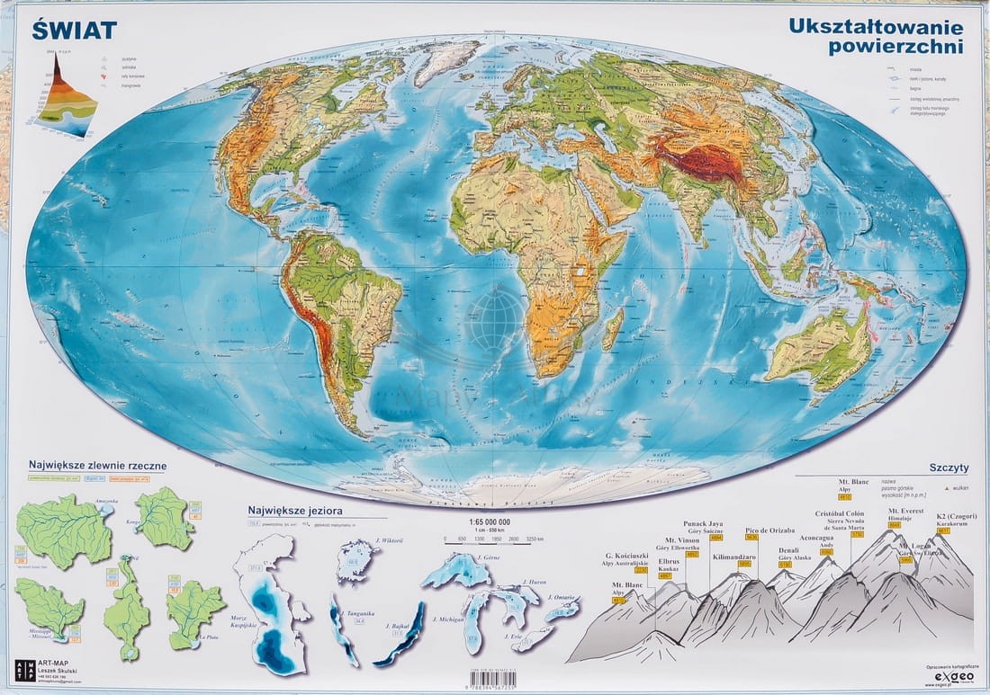 - mapę ukształtowania powierzchni świata w skali 1:65 000 000,