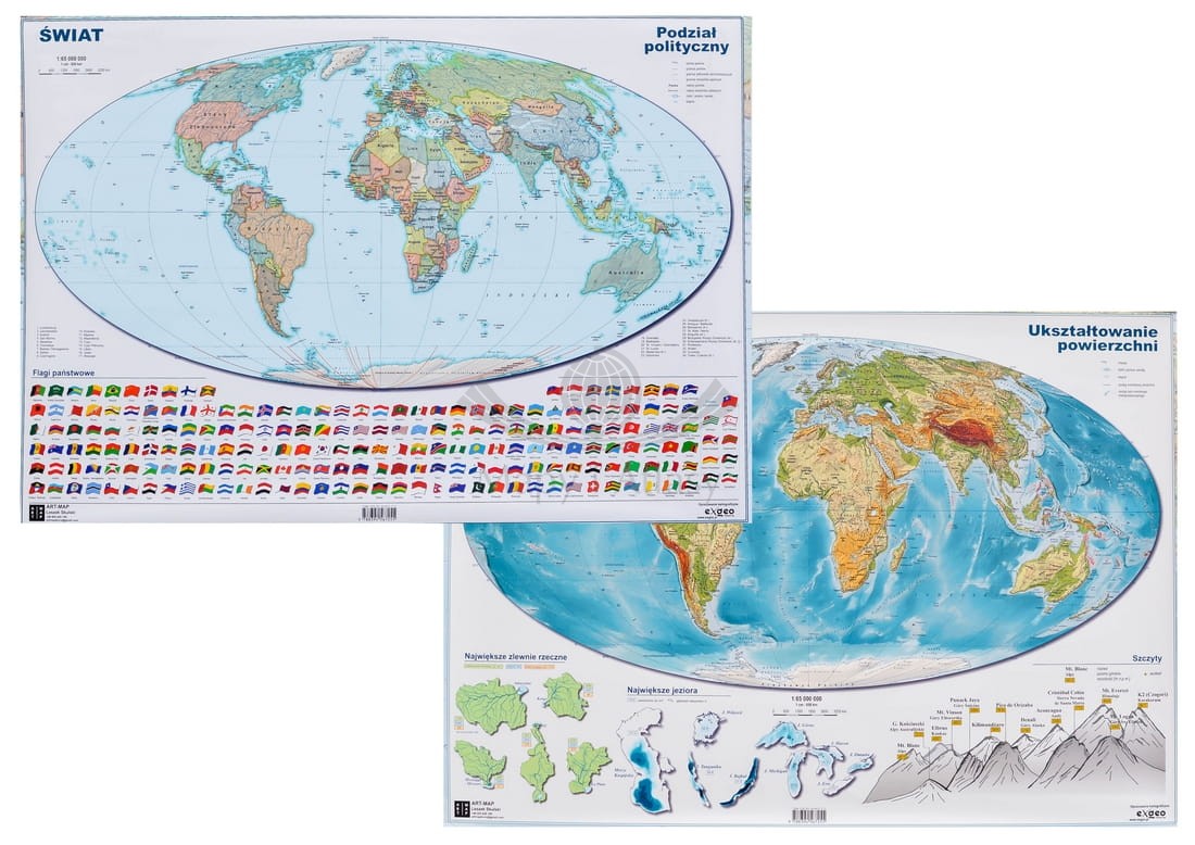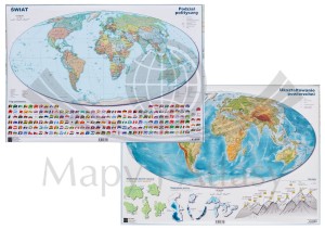 Dwustronna podkładka na biurko z mapą polityczną i fizyczną świata wydawnictwa ART-MAP.