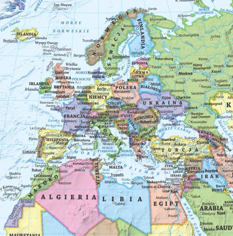 - stolice i najważniejsze miasta,