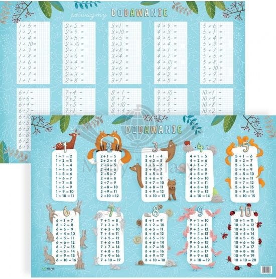 Dodawanie. Podkładka edukacyjna na biurko