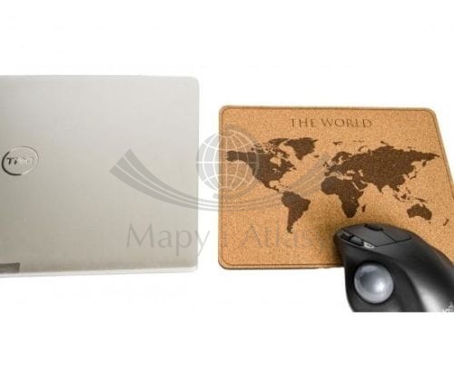 Korkowa podkładka pod mysz z mapą świata.