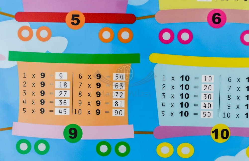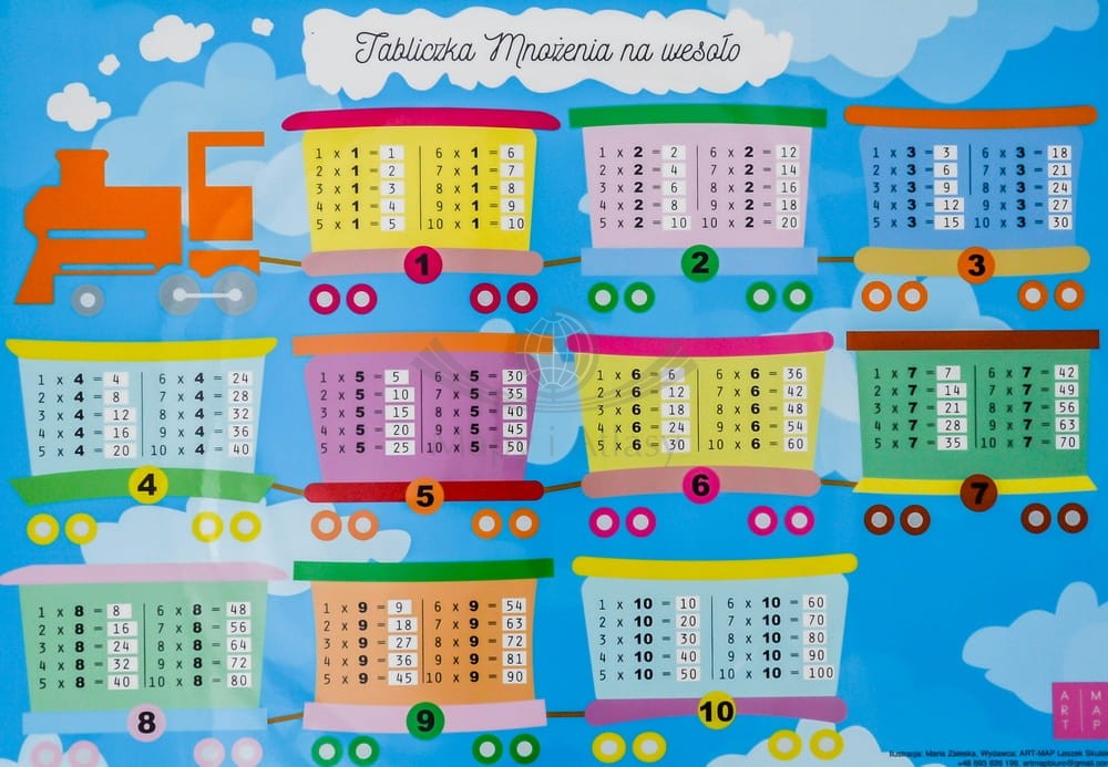 - tabliczka mnożenia z wynikami.