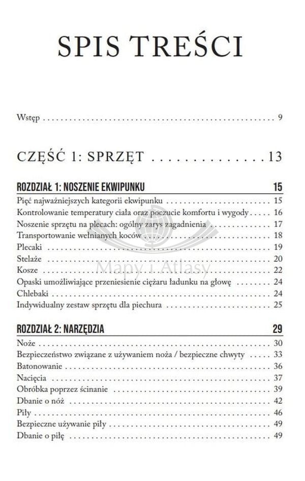 Ta książka jest kompletnym kompendium wiedzy, dzięki której poradzisz sobie w każdych warunkach. Dowiesz się, co zabrać ze sobą na wyprawę, a co będzie zbędnym balastem. Znajdziesz tu dokładne opisy narzędzi do cięcia, sprzętu zapewniającego schronienie, urządzeń rozpalających oraz pojemników i olinowania w kontekście warunków panujących w dziczy, a także mnóstwo wskazówek dotyczących posługiwania się mapą i kompasem, rozpalania ognisk czy zapewnienia sobie ochrony przed żywiołami. Dzięki temu praktycznemu przewodnikowi odkryjesz, jak hojna i piękna potrafi być dzika przyroda. Radzenie sobie bez zdobyczy cywilizacji wymaga nieco determinacji, jednak zdobycie tej wiedzy i umiejętności może w krytycznych sytuacjach okazać się bezcenne i ocalić życie.