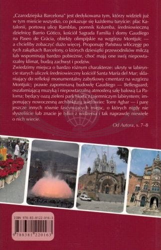 Przewodnik ,,Czarodziejska Barcelona" nie jest typowym, klasycznym przewodnikiem-słownikiem krajoznawczym. To luźny zbiór bardzo osobistych wspomnień, opowieści o miejscach szczególnych, niezwykłych, wybranych. Miejscach magicznych. Takich, w których zakochujemy się od pierwszego wejrzenia, których widok wywołuje szczery uśmiech na twarzy i iskry zachwytu w oczach.