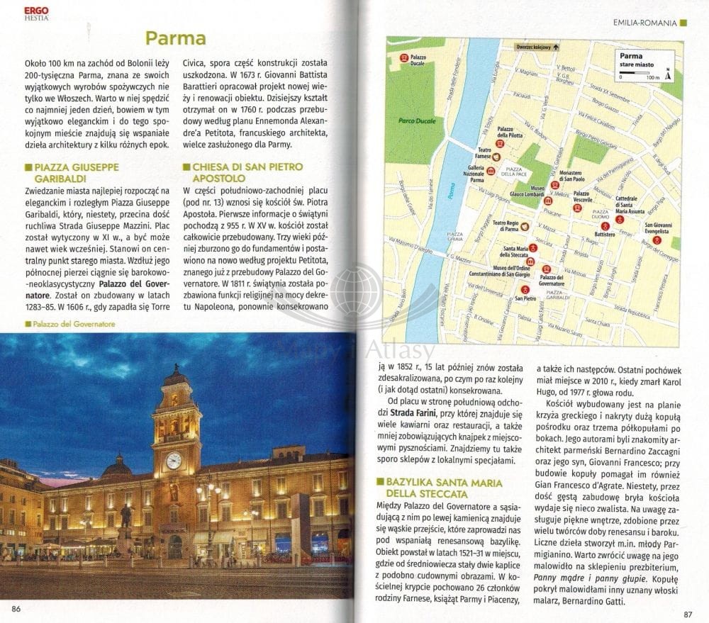 Emilia-Romania, położona między Morzem Adriatyckim i Apeninami, to region bardzo zróżnicowany. Na żyznej Nizinie Padańskiej leżą historyczne miasta pamiętające Etrusków i czasy Cesarstwa Rzymskiego - wśród nich Bolonia ze średniowieczną zabudową i najstarszym uniwersytetem w Europie, pełna renesansowych budowli Ferrara i słynąca ze wczesnochrześcijańskich mozaik Rawenna. Nadmorskie plaże zachęcają do wypoczynku i kąpieli, z kolei w Apeninach jest wiele szlaków dla miłośników pieszych wędrówek, a także świetne ośrodki narciarskie. Coś dla siebie znajdą tu również koneserzy kuchni opartej na daniach mięsnych i słynnej polencie, uszlachetnionej regionalnymi winami, serem Grana Padano i szynką parmeńską.