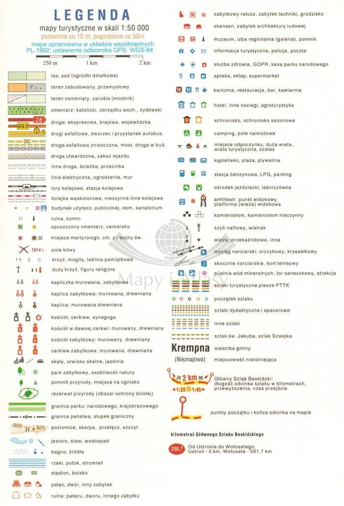 – szczegółowe mapy w skali 1:50 000 wraz z profilami wysokości trasy,