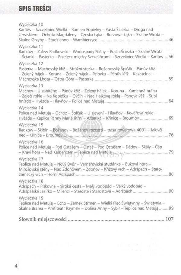 Trzecią część stanowi słownik miejscowości, obejmujący m.in. uzdrowiska: Kudowa-Zdrój, Polanica-Zdrój, Duszniki-Zdrój oraz zabytkowe miasta i miasteczka po stronie polskiej i czeskiej: Adršpach, Broumov, Hronov, Lewin Kłodzki, Náchod, Pasterka — wioska na końcu świata, Police nad Metují, Radków, Szczytna, Teplice nad Metují, Wambierzyce.