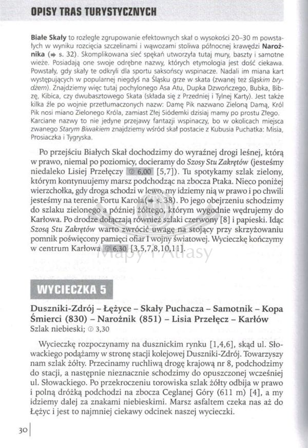 4. Duszniki-Zdrój – Złotno – Góra św Anny – Skała Józefa – Kaplica św. Anny – Batorów – Batorówek – Skalne Grzyby – Zbój – Białe Skały – Lisia Przełęcz – Fort Karola – Karłów