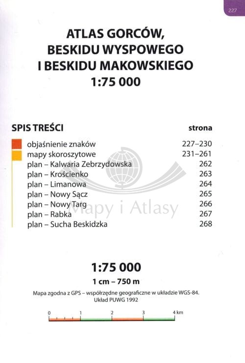 - atlas Gorców, Beskidu Wyspowego i Makowskiego w skali 1:75 000,