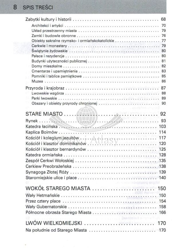 W przewodniku opisano szczegółowo lwowskie zabytki, głównie świątynie i znajdujące się w nich dzieła sztuki, ciekawostki przyrodnicze Lwowa i jego najbliższych okolic. Uwzględniono także najnowsze (po 1991 r.) zdobycze nauki polskiej i ukraińskiej w tym zakresie. Poświęcono również uwagę zabytkom z przełomu XIX/XX w. czyli lwowskiej secesji. Publikacja obejmuje dodatkowo obrzeże lwowskiej aglomeracji opisując takie miejscowości jak: Brzuchowice, Winniki, Dublany i Grzybowice Wielkie.