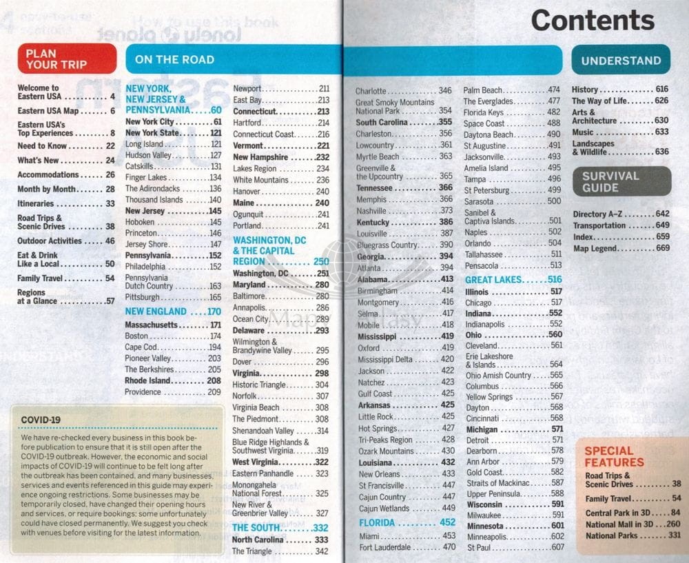 Przewodnik po wschodnich Stanach Zjednoczonych w języku angielskim wydawnictwa Lonely Planet.