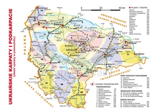 U podnóża gór czekają na turystę cenne zespoły zabytków Sambora i Dobromila. Zapraszają słynne zdroje Truskawca i Morszyna. Warto zwiedzić miasto Brunona Schulza — Drohobycz, jeden z najciekawszych historycznych ośrodków Galicji Wschodniej.