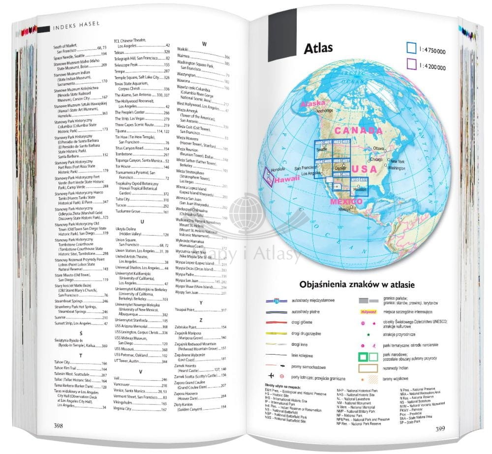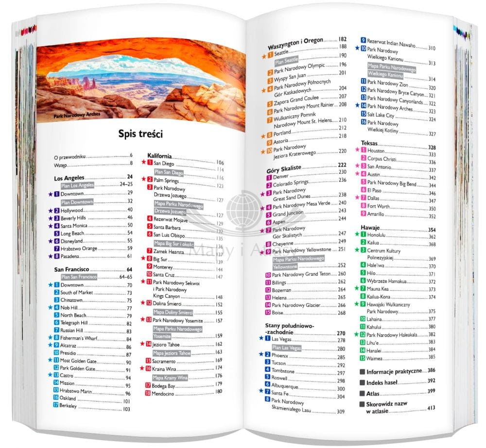 - szczegółowy atlas zachodniej części USA, w którym zaznaczono miejsca opisane w przewodniku.