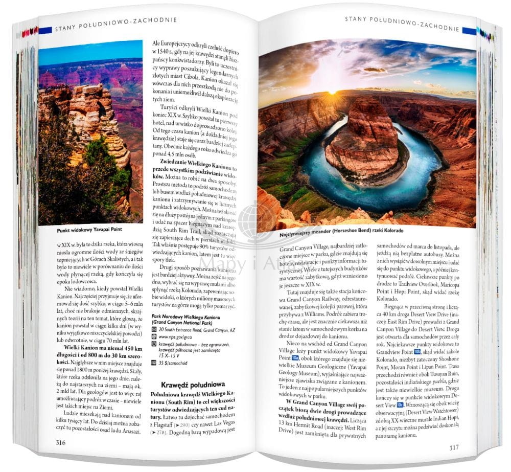 Największe atrakcje zachodniej części USA w jednym tomie. Fabryka Snów Hollywood, Wielki Kanion i rajskie zakątki Hawajów. Tętniące życiem metropolie Los Angeles, San Francisco, Seattle i Phoenix. Niezwykłe atrakcje przyrodnicze w Utah, Arizonie, Yellowstone i Górach Skalistych.
