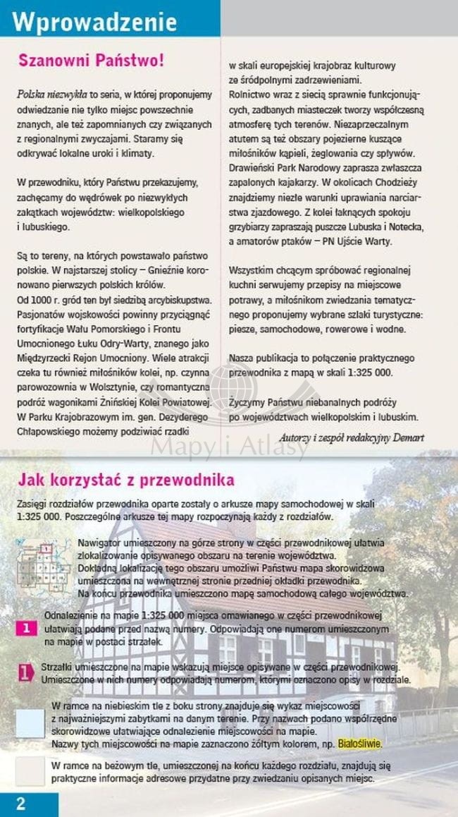 Przewodnik z mapami po województwie wielkopolskim i lubuskim z serii "Polska niezwykła" wydawnictwa Demart.