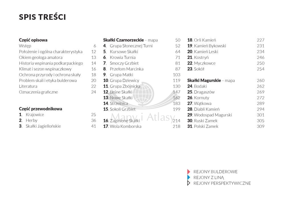Przewodnik składa się 31 rozdziałów, opisujących duże rejony, ale także te mniejsze. W sumie w topo znajduje się 1000 dróg wspinaczkowych i 1000 bulderów.