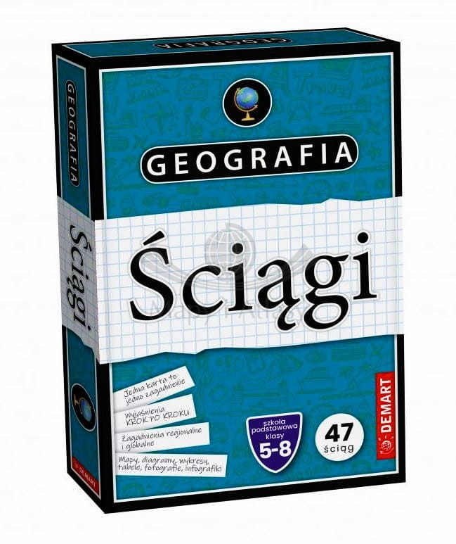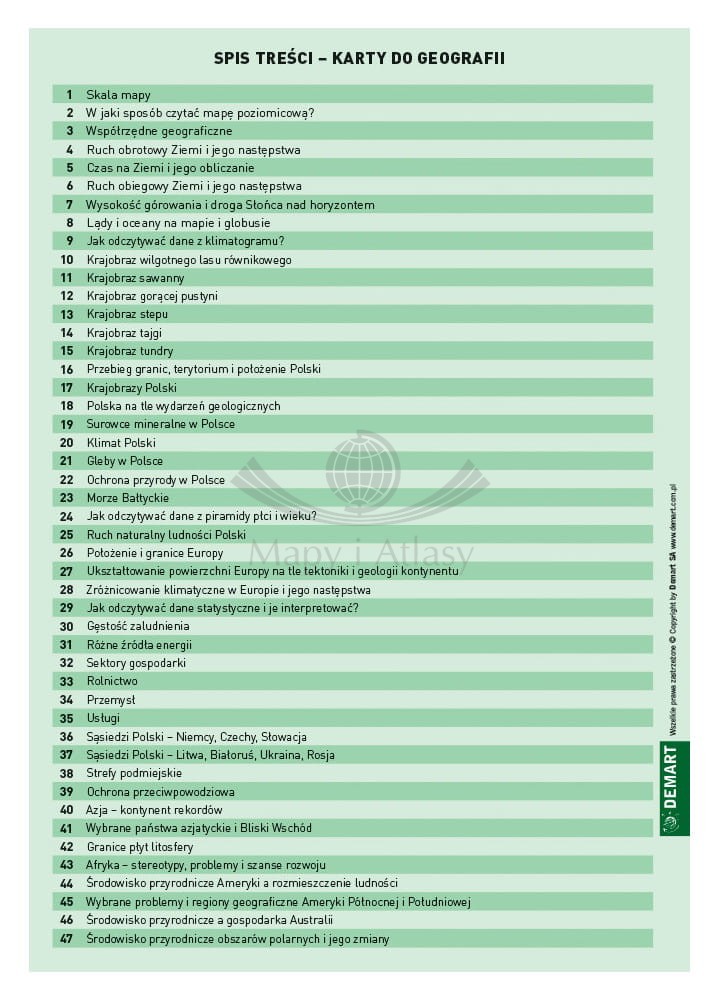 Ściągi, karty edukacyjne do geografii dla klas 5-8 wydawnictwa Demart.