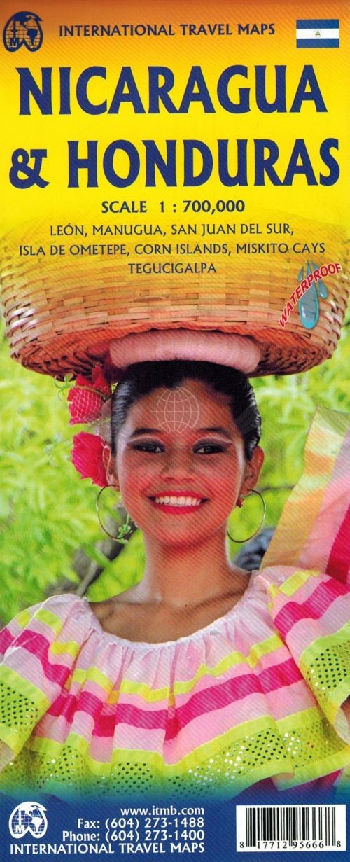 Nikaragua i Honduras 1:700 000. Wodoodporna mapa samochodowo-turystyczna. ITMB