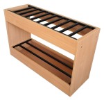 Stojak (wózek) z płyty meblowej umożliwiający przechowywanie zwiniętych map ściennych różnej wielkości w pozycji pionowej.