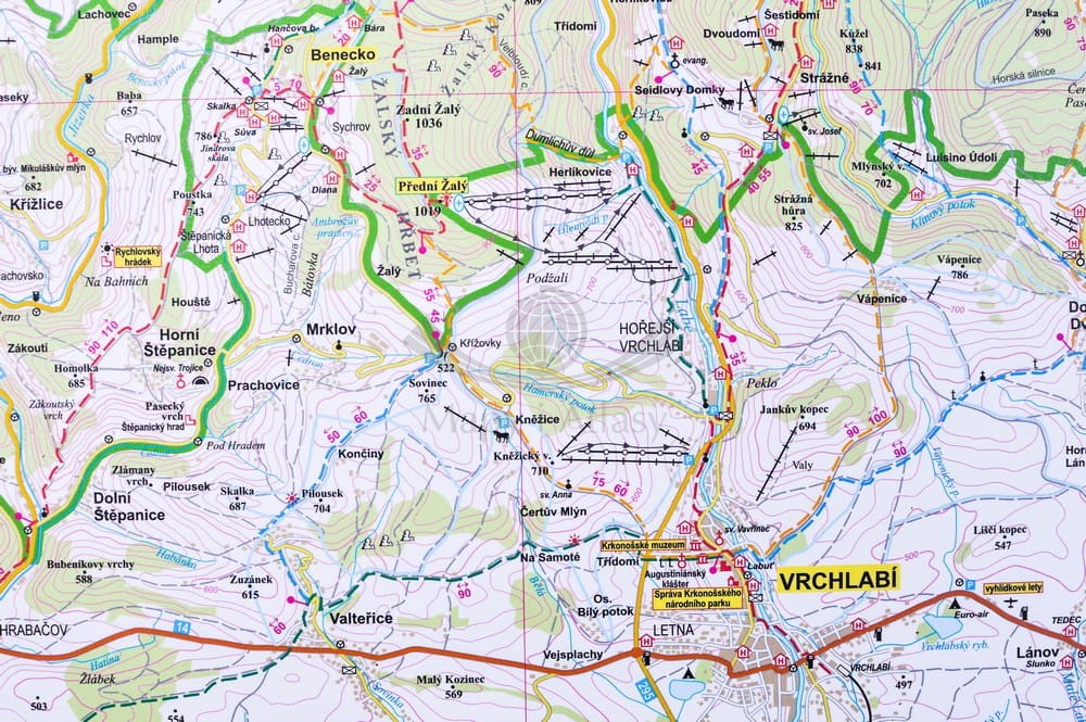 Ścienna mapa turystyczna Karkonoszy Polskich i Czeskich oraz Rudaw Janowickich w formie tapety w rozmiarze XL. Na mapie zaznaczono m.in.: granice państwa, autostrady, drogi, drogi gruntowe, ścieżki...