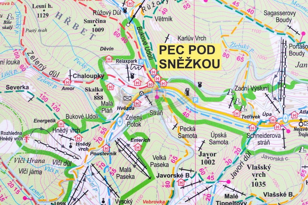- wyciągi, trasy zjazdowe, trasy biegowe, szlaki turystyczne, czasy przejścia (w minutach), ścieżki przyrodnicze,