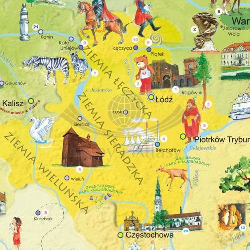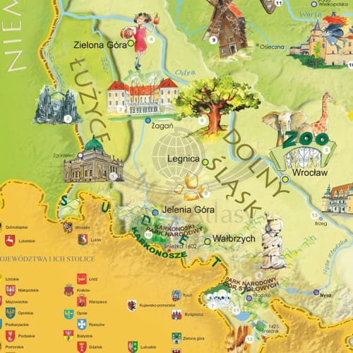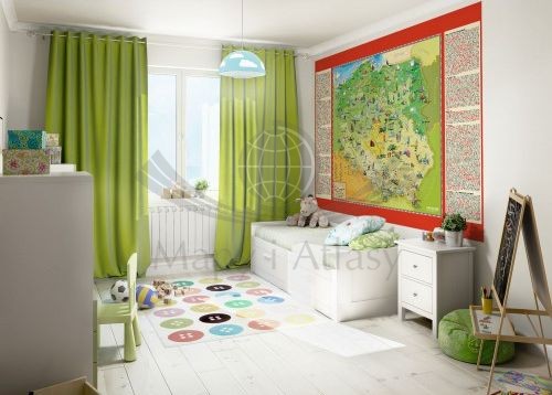 Polska Młodego Odkrywcy XXL - geograficzna mapa ścienna - tapeta dla dzieci, pełniąca rolę edukacyjną oraz dekoracyjną. Zaznaczono na niej barwnie regiony i województwa wraz z ukształtowaniem terenu, jak też za pomocą kolorowych piktogramów najbardziej charakterystyczne budowle, zwierzęta, pomniki przyrody, wydarzenia. Dzięki temu mapa jest fascynującym źródłem wiedzy o historii i teraźniejszości naszego kraju. Przekazuje w ciekawy sposób informacje z zakresu geografii, przyrody i kultury. Pobudza wyobraźnię, zachęca do zdobywania wiedzy i inspiruje. Jest również świetnym pretekstem do spędzania w twórczy sposób wspólnego czasu rodziców z dziećmi. Jakość i estetyka wykonania sprawiają, że stanowi ozdobę dziecięcego pokoju.