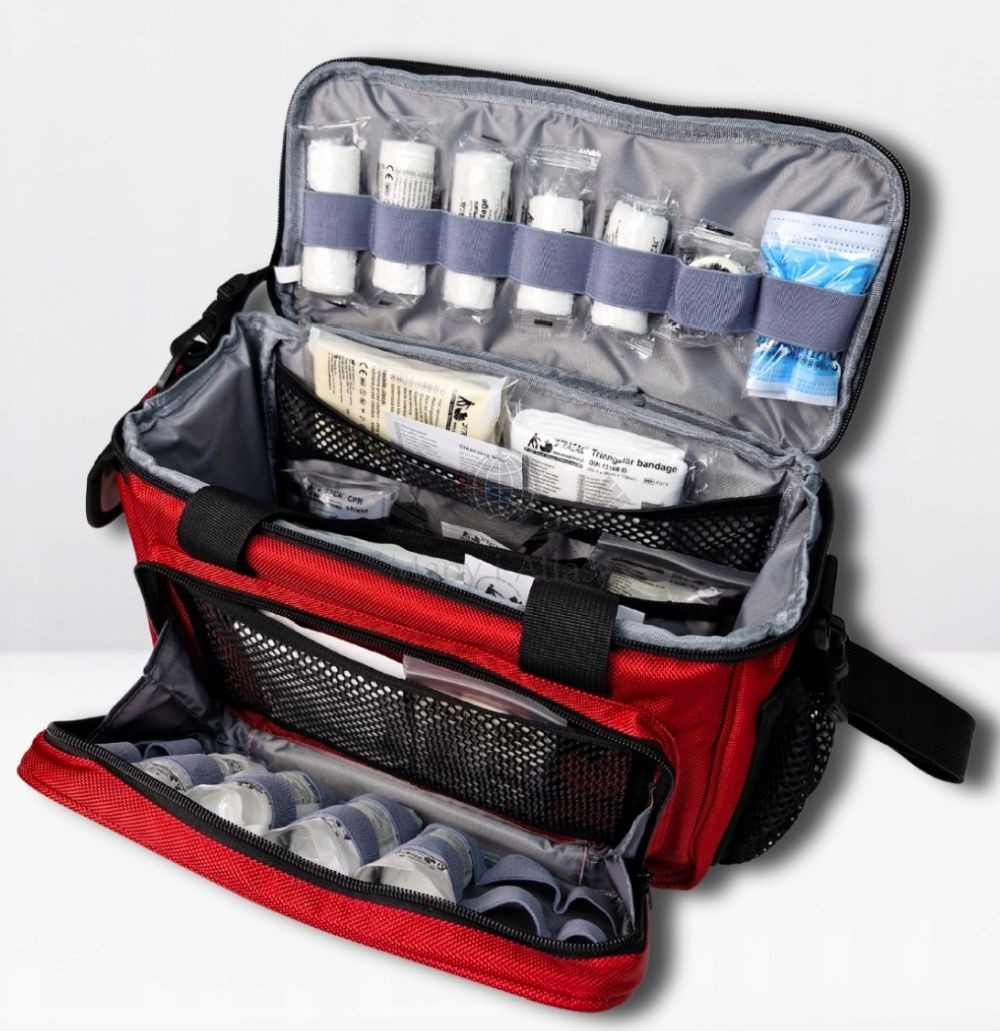 Solidna torba pierwszej pomocy z wyposażeniem zgodnym z normą DIN 13164 SUPER PLUS. Praktyczna w firmach, pojazdach firmowych i służbowych, jednostkach terenowych oraz wszędzie tam, gdzie liczy się szybka reakcja na urazy. Wyposażenie umożliwia udzielenie pomocy przy skaleczeniach, krwotokach, stłuczeniach czy zwichnięciach. Starannie zaprojektowana torba zapewnia łatwy dostęp do wyposażenia, a wzmocniony materiał daje odporność na intensywne użytkowanie.