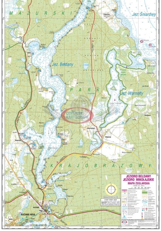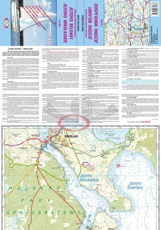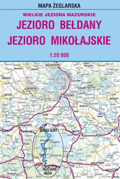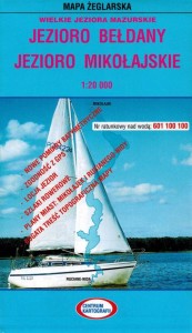 Składana, laminowana mapa żeglarska Jeziora Bełdany oraz Mikołajskiego w skali 1:20 000.