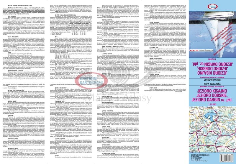Składana, laminowana mapa żeglarska Jeziora Kisajno, Dobskiego i południowej części Jeziora Dargin w skali 1:25 000.