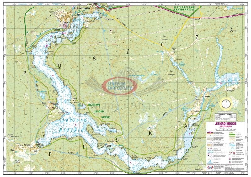 Składana, laminowana mapa żeglarska Jeziora Nidzkiego w skali 1:25 000.